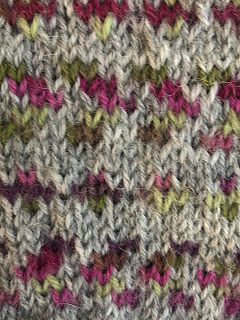 Vantarna är stickade i garnet Nalle från Novita. Jag använder ett enfärgat garn som bas och ett flerfärgat garn till mönstret.